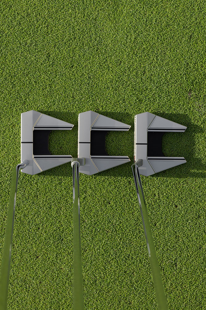 3つのヘッド形状をベースに、5種類のネックおよびシャフト構成を展開。プレーヤーのストロークタイプや好みに合わせ、最適な選択肢を提供します。新たに加わったのが、PHANTOM 5 OCに搭載される低トルクの《Onset Center(OC)》構造。スクエアでストレートなストロークを志向するプレーヤーに最適な設計です。さらに、ツアープレーヤーの要望に応えてPHANTOM 7に「ダブルベントシャフト」構成が新登場。これにより、ミッドシングルベント構成に比べてフェースバランスの取れたフィーリングと新しいアドレスルックを実現しています。