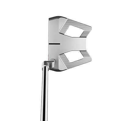 PHANTOM 7は、PHANTOM 5よりも前後方向に大きい、シャープなウィングバックのマレット形状。そのレール状のアライメント性能で多くのプレーヤーに信頼されています。PGAツアー優勝者マイケル・ブレナン(7.2ツアープロトタイプ)や2021年FedExCupチャンピオンもこの形状を使用しています。2026年モデルでは、ツアー選手のフィードバックを基にフェースバランスを高めた「ダブルベントシャフト」構成が新たに加わっています。
