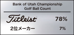 タイトリストは「ユタバンク選手権」において、78%の圧倒的信頼を獲得してNo. 1ボールブランドに。ドライバー、フェアウェイメタル、ユーティリティメタル、ユーティリティアイアン、アイアン、ウェッジ、パターでも最も多くの信頼を獲得して各部門で使用率No. 1に輝いています。